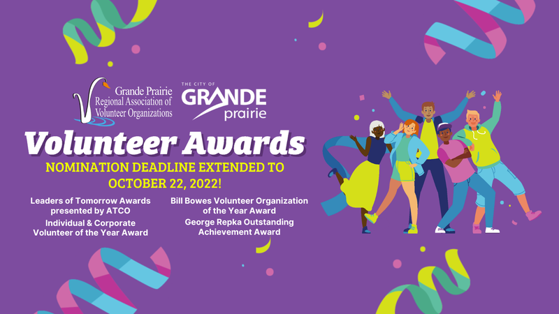 The City of Grande Prairie and Grande Prairie Regional Association of Volunteer Organization has extended the deadline to submit nominations for the Local Volunteer Awards to October 22.The City has p...
