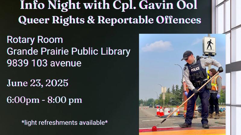 A free information session for Grande Prairie's 2SLGBTQIA+ community and allies about their legal rights is being held this evening.As part of pride month, the Grande prairie Pride Society wants to en...