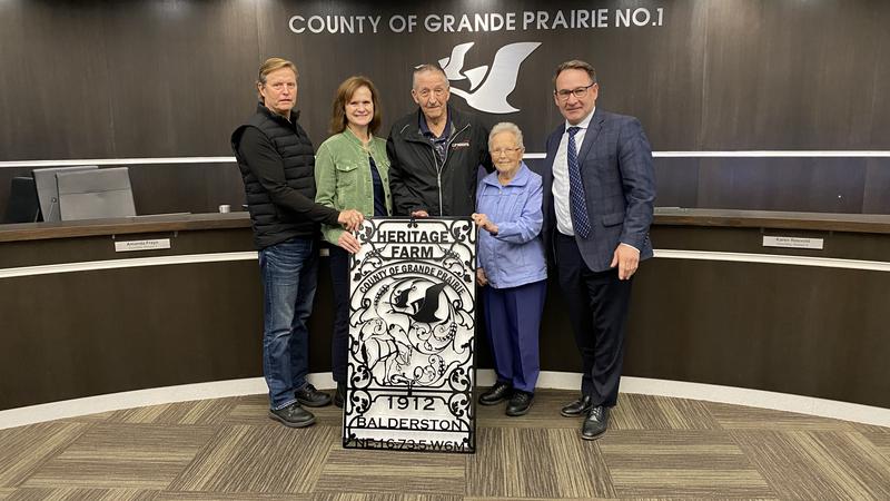 The Balderston Family from Sexsmith has been given a 100 Years of Farming Heritage Homestead Award by the County of Grande Prairie.Five generations have farmed the land that was the homestead in 1912 ...