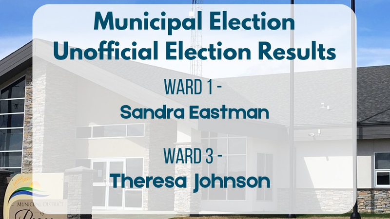The MD of Peace shared its unofficial results. In Ward 1, Sandra Eastman leads the polls while Theresa Johnson has an edge in Ward 3; All other wards were acclaimed: Sandra Eastman - 33 - Elected Councillor Robert McCallum - 18 Ward 2 Lori Kinnee - Acclaimed Councillor Ward 3 Theresa Johnson - 23 - Elected Councillor S...